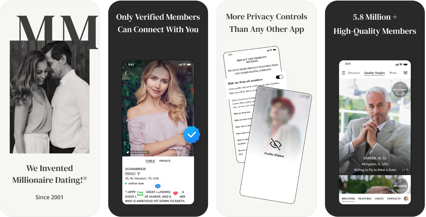 Verified Profiles and Safe Dating -Enjoy the same trusted environment as the website, with verified millionaire members, identity checks, and privacy-first security settings — all optimized for mobile use.